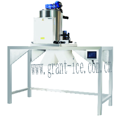 2、片冰機: -般多為工業制冰機。所生產冰為薄片狀。片冰可以由淡水制成,也可以由鹽水制成。片冰為薄片、干爽疏松狀的白色冰,厚度10毫米到15毫米,品面形狀不規則,直徑約為12到45毫米。片冰無尖銳棱角,不會刺傷冷凍物體。可進入被冷卻物之間的間隙,減少熱交換,保持冰的溫度,并有良好的保濕效果。片冰制冷效果佳,有制冷量大、迅速的特點,因此主要應用于各種大型制冷設施、食品速凍、混凝土冷卻等等。